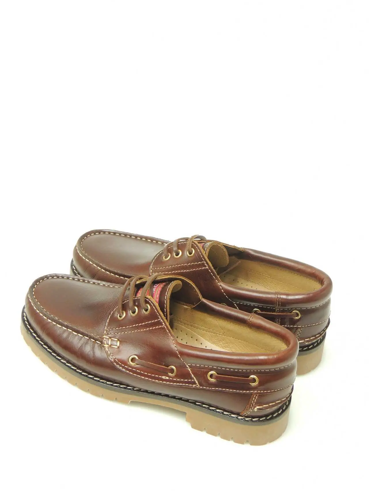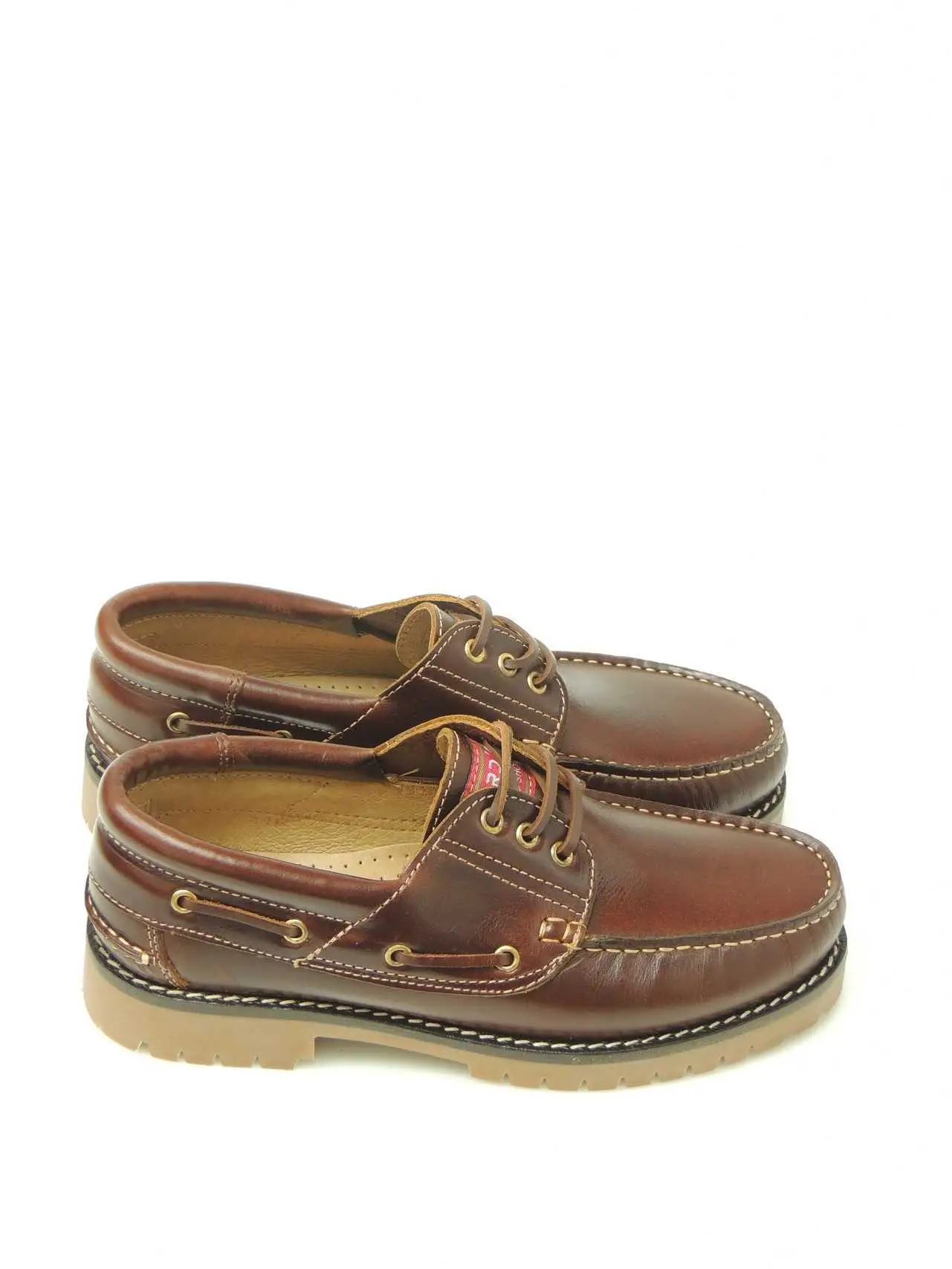 Zapatos tipo náutico en piel, con piso de goma flexible y dentado para una mayor adherencia y con cierre de cordones.